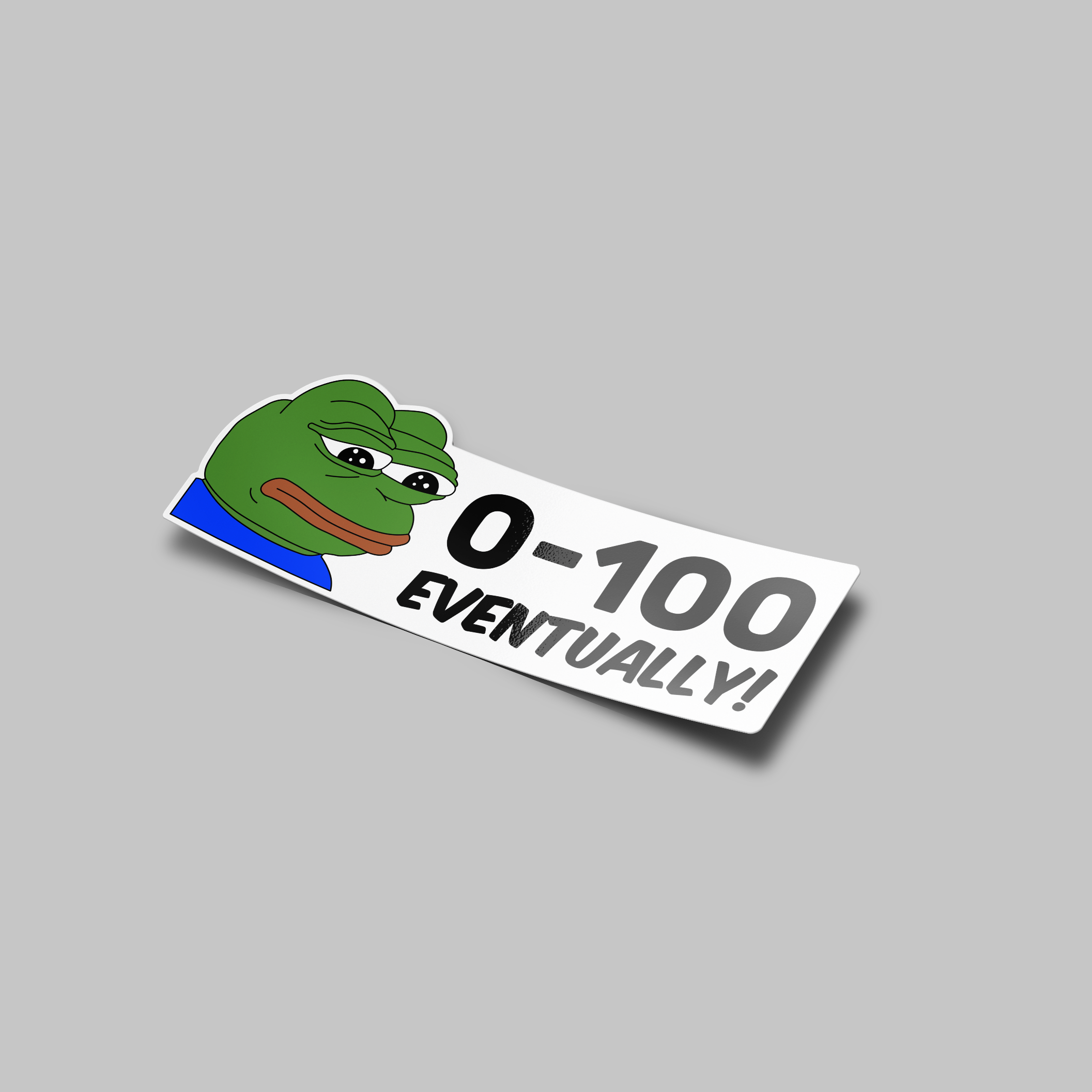 Embrace your vehicle's leisurely pace with this hilarious "0-100 Eventually" sticker! Perfect for proud owners of cars that treat acceleration as a suggestion rather than a command. Show the world you're in no rush and have a great sense of humour about your four-wheeled brick. Durable, weather-resistant, and guaranteed to get laughs from fellow motorists as they zoom past. Speed isn't everything... right?