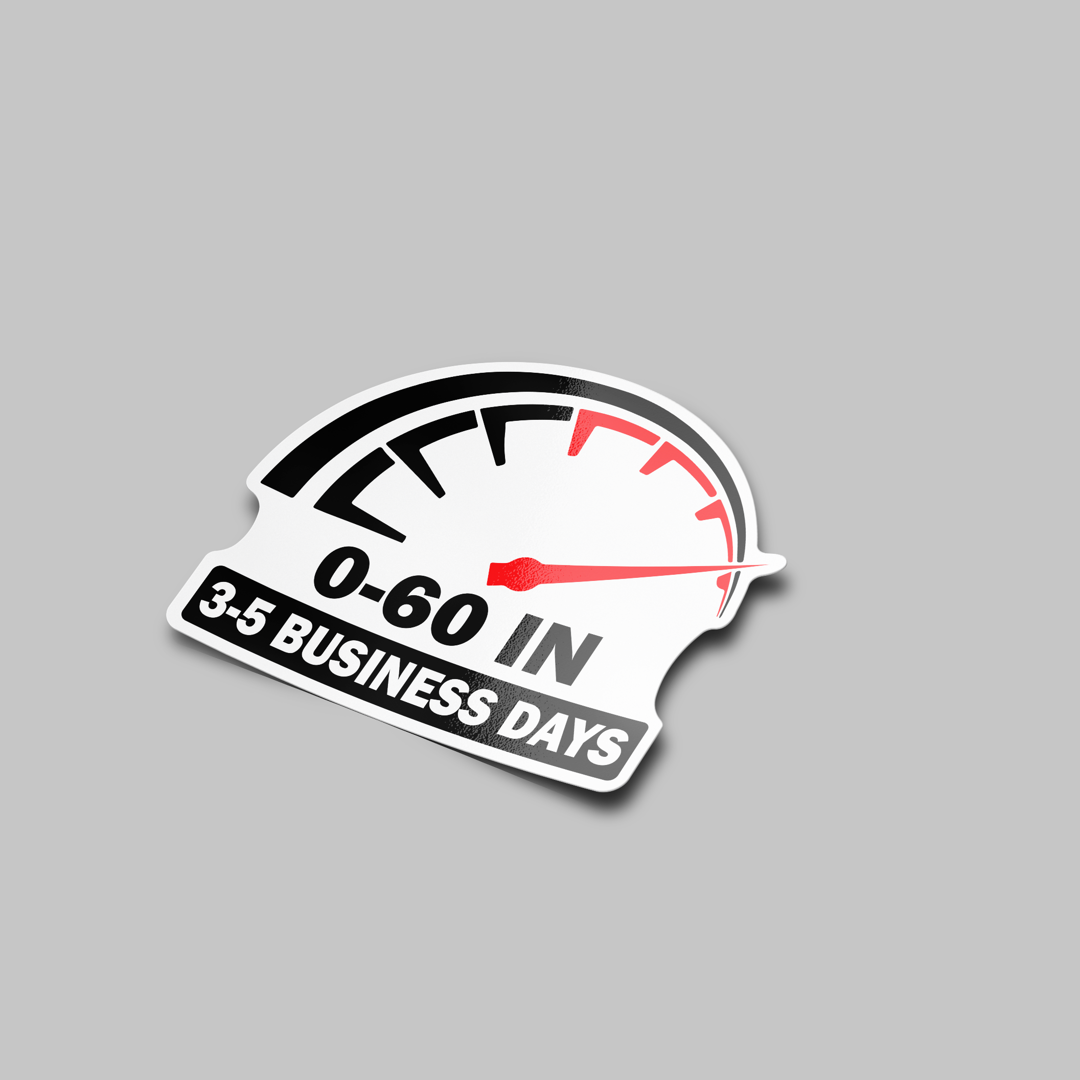This "0-60 in 3-5 Business Days" sticker adds a playful touch to your vehicle, perfect for those who appreciate a slow and steady pace. Made with durable materials, it’s ideal for car bumpers and windows, bringing a lighthearted vibe to your relaxed driving style.