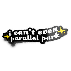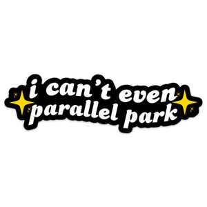 Show off your parking struggles with this hilarious "I Can’t Even Parallel Park" sticker. Perfect for anyone who knows the pain of squeezing into tight spots, or missing them entirely. Stick it on your car to proudly declare your parking fails with a wink and a smile. Embrace your bad parking skills with a playful dose of sarcasm!