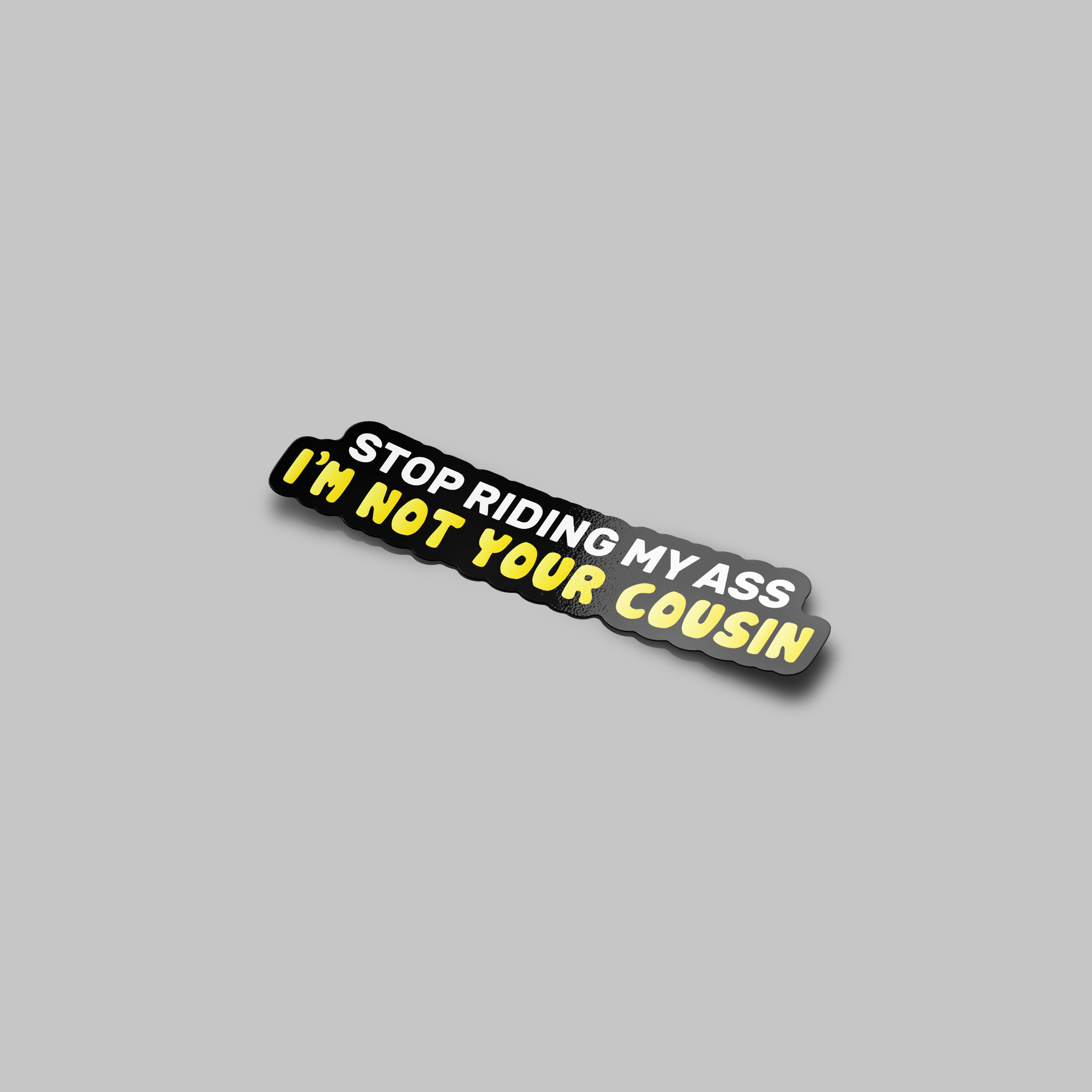 Keep tailgaters at bay with the Stop Riding My Ass Cousin Sticker! A cheeky reminder that you’re not family, so back off and give some space. Perfect for sticking on your car to send a playful yet clear message to those who just can’t keep their distance on the road.