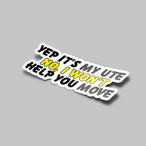 Show off your Aussie pride with the "Yep It’s My Ute" sticker! Perfect for your ute or any vehicle, this cheeky decal lets everyone know you’re not here to help move, just to enjoy the ride (if you're even offered one!). Durable and weather-resistant, it’s a fun way to add personality and keep things light-hearted on the road.