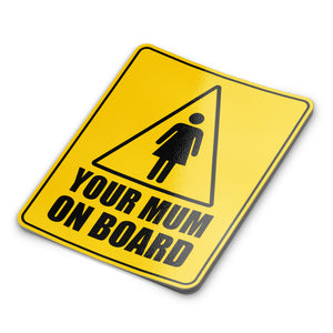 Forget babies - this ride's got your mum on board. A cheeky twist on the classic sign, the Your Mum On Board sticker brings the banter straight to your back window. Perfect for stirring up laughs at the lights, annoying tailgaters, or simply celebrating Aussie humour at its pettiest. Stick it, drive off, and wait for the giggles (or glares).